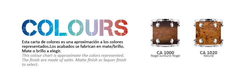 Colour chart. The finishes are made of satin. Matte finish or laquer finish to select.