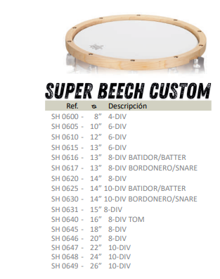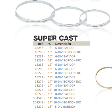 The hoops that are part of our catalog are metallic, Super Cast, Super Beech Custom and Beech.