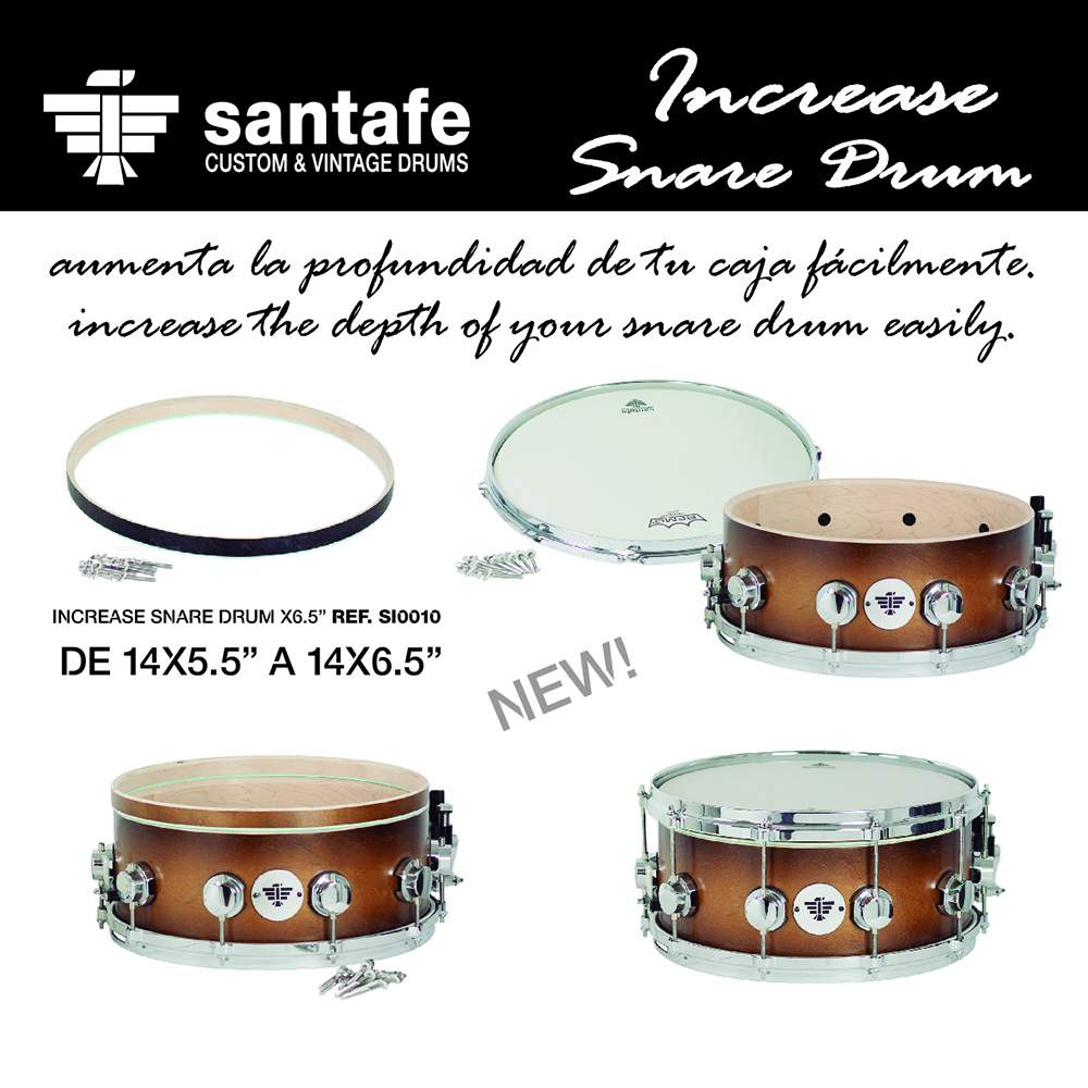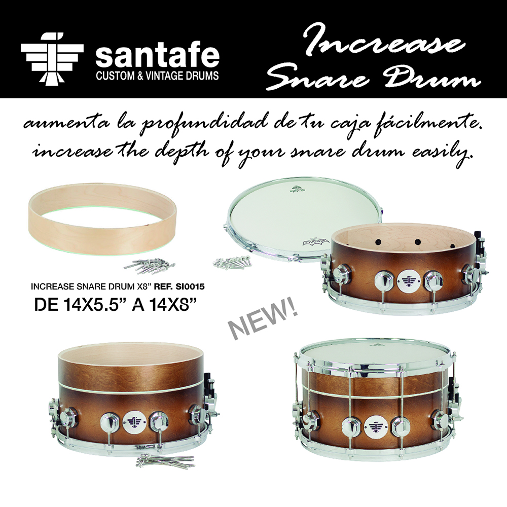 Two models available: Ref.SI0010 to increase the depth of your snare drum from 14x5.5 "to 14x6.5" and ref. SI0015 to increase from 14x5.5 "to 14x8". Select finish in colour chart.