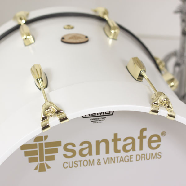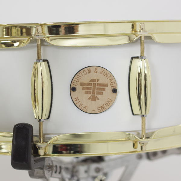 Birch shell. Bass drum 18"x16". Snare drum piccolo de 14"x4" and snare drum 14"x5.6". Tom 12"x8". Floor Tom 14"x14" and 16"x14". Lugs 2016 gold and hardware gold. Remo drum head. Finish blanco opaco (GC0075).