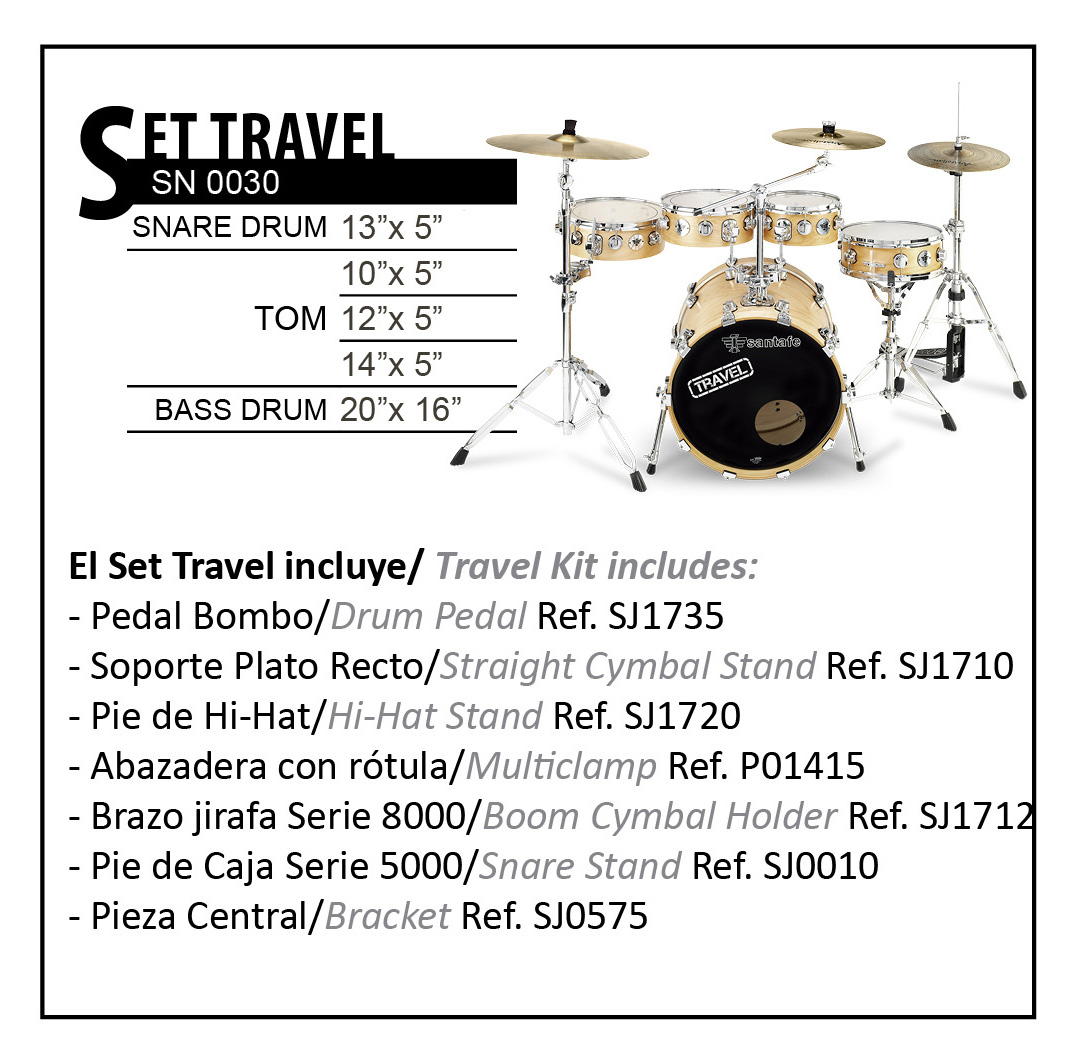 Monté avec des peux Remo UT. Cet set comprend: Pèdal grosse-caisse ref. SJ1735, stand cymbale droit ref. SJ0050, pedale hi-hat ref. SJ1720, perche cymbale ref. SJ0010 et stand tom.